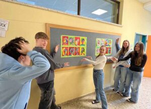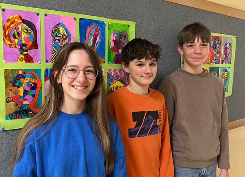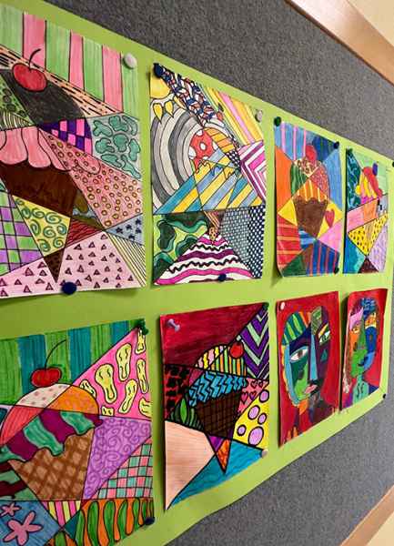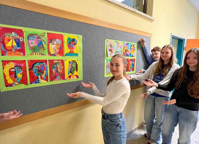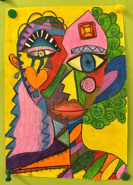 Unter der Leitung unserer Kunst- und Gestaltungslehrerin, Frau Pekmezci, haben die Klassen 3a und 3m außerdem abstrakte Porträts und Gesichter erschaffen. Ihre Werke sind geprägt von kantigen, maskenhaften Formen und interessanten Linien, ganz im Stil des Kubismus.