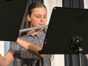 Die jungen Talente begeisterten mit viel Herzblut beim Tanzen und Singen. Ein absoluter Höhepunkt war zweifellos das mitreißende Theaterstück „Ein Walzer für die Ewigkeit“. Doch auch die solistischen Einlagen ließen das Publikum staunen: Simon Brauchart verzauberte am Klavier, Emma Zechner, Nina Silgener und Anika Url entlockten ihren Querflöten wunderschöne Melodien, Julian Pauritsch glänzte an der Trompete und Luisa Lukan verströmte zarte Klänge an der Harfe. Nach dem letzten Ton des Konzerts gab es kein Halten mehr – Standing Ovations und der Wunsch nach einer Zugabe waren überwältigend und wurden mit süßen Köstlichkeiten belohnt.