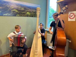 Welch ein zauberhaftes „Kleines Konzertchen“ der 1m Klasse im Pfarrsaal Eibiswald! Schon im Foyer sorgte das Volksmusikensemble für eine stimmungsvolle Einstimmung.