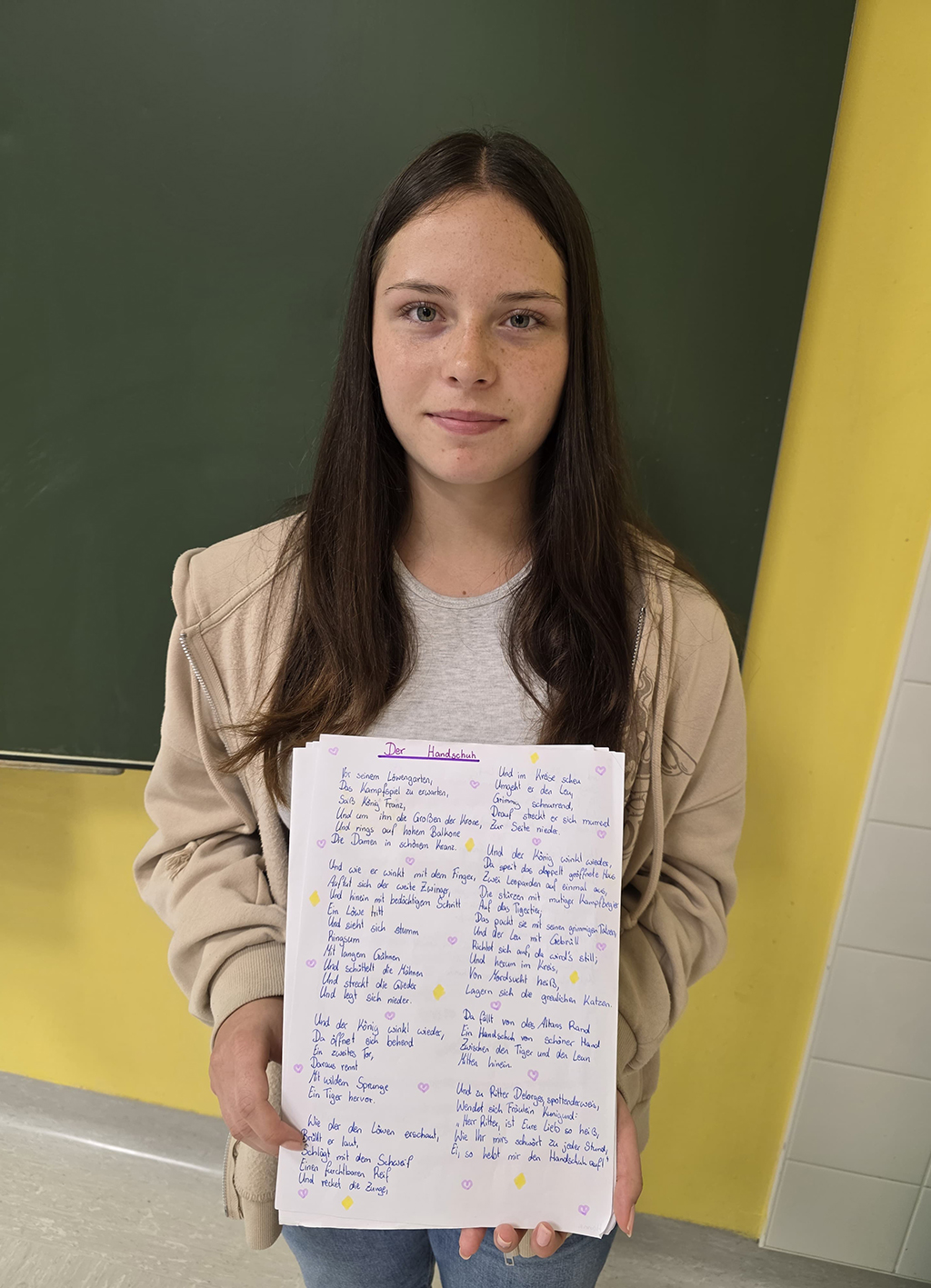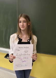Den krönenden Abschluss des Projekts bildete ein Balladenvortrag, bei dem die Schülerinnen und Schüler ihre gewählte Ballade vor der Klasse vortragen konnten. Dabei zeigten sie nicht nur ihr Textverständnis, sondern auch ihr sprachliches Ausdrucksvermögen.