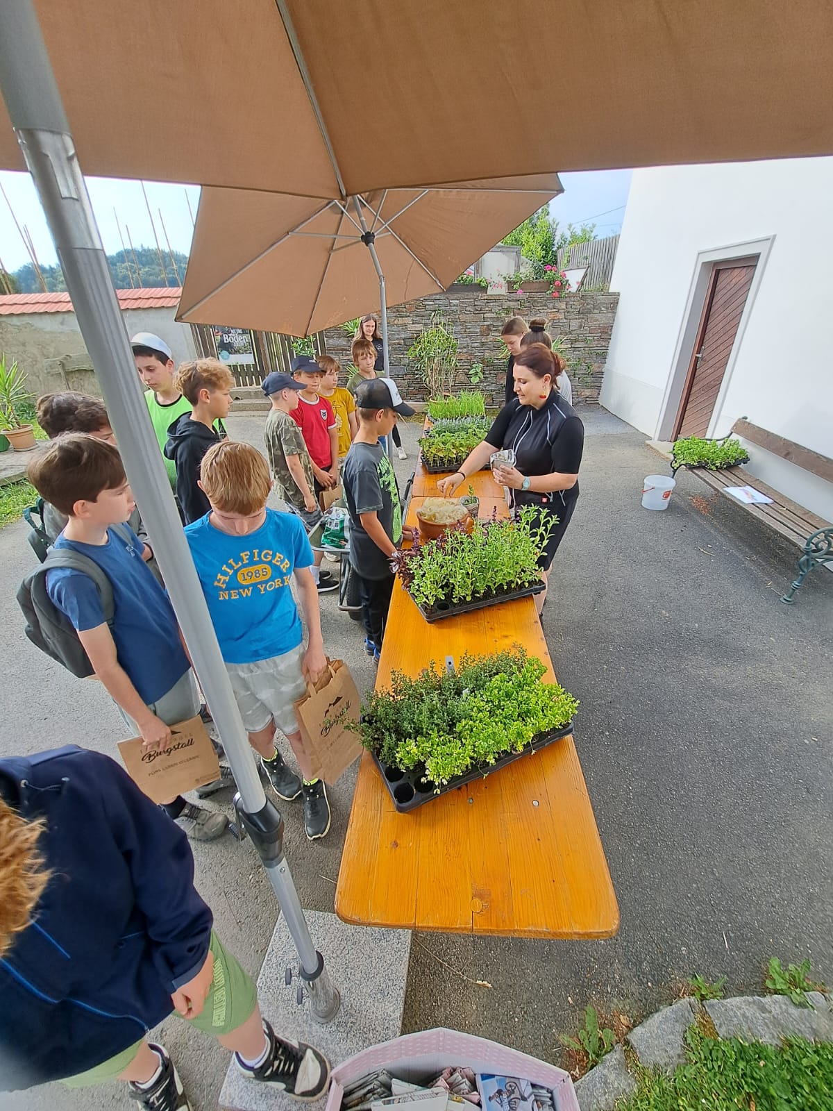 Zum Abschluss bekam jedes Kind ein kleines Geschenksackerl gefüllt mit selbstgemachter Lavendelcreme, einem Gewürzkraut nach Wahl und einem frisch gebackenen Weckerl. Auf dem Rückweg zur Schule wurde fleißig über die neuen Erkenntnisse geplaudert und so manches Kräuterwissen ausgetauscht.