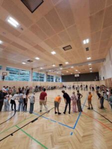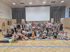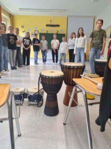 Der zweite Workshop-Tag war exklusiv der 2m-Klasse gewidmet (der Grund dafür folgt im Anschluss). Gemeinsam studierten sie mehrere Lieder ein, darunter ein humorvolles Stück in vier Sprachen: Deutsch, Englisch, Portugiesisch und Steirisch. Mit allem, was der Musikraum hergab, wurde eifrig getrommelt. Selbst die Lehrkräfte im Konferenzzimmer konnten nicht widerstehen und schwangen zu den brasilianischen Rhythmen die Hüften.