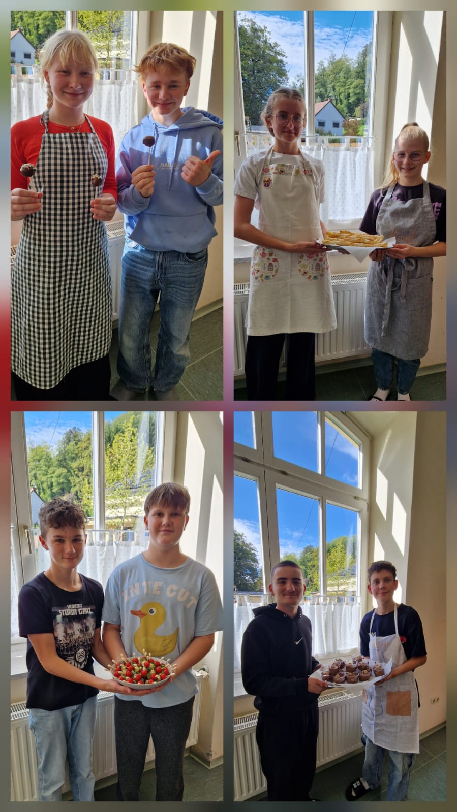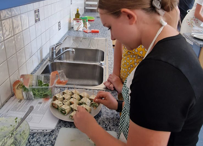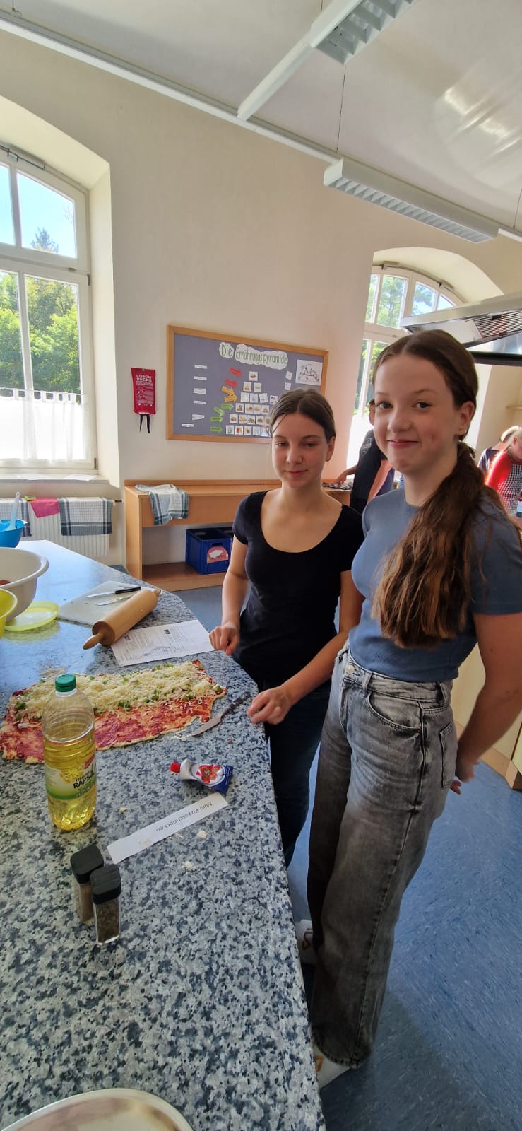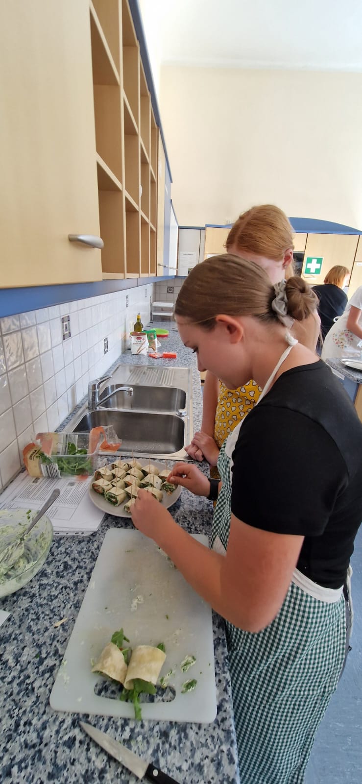 In Zweierteams entschieden sie sich für ein Fingerfood-Rezept und bereiteten ihren Arbeitsplatz sorgfältig vor. Während der praktischen Phase arbeiteten alle Gruppen konzentriert, diszipliniert und sehr sorgfältig. Der Umgang mit den Lebensmitteln, sowie mit den Küchengeräten erfolgte verantwortungsvoll und hygienisch einwandfrei.