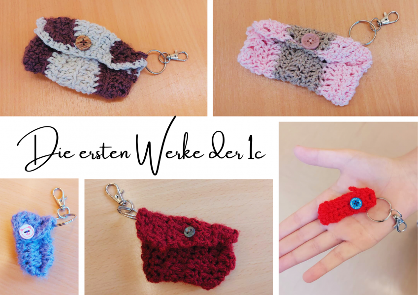 Die 1c-Klasse zeigte viel Geduld und Geschick beim Häkeln kleiner Täschchen, die nun als bunte Schlüsselanhänger dienen.