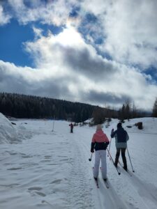 Gleich am Montag starteten wir mit zwei Gruppen – einer Anfängergruppe und einer Gruppe für Fortgeschrittene. Während die Anfängerinnen und Anfänger motiviert die Basics des Langlaufens erlernten, machten die Fortgeschrittenen bereits die Loipen unsicher und sammelten fleißig Kilometer.