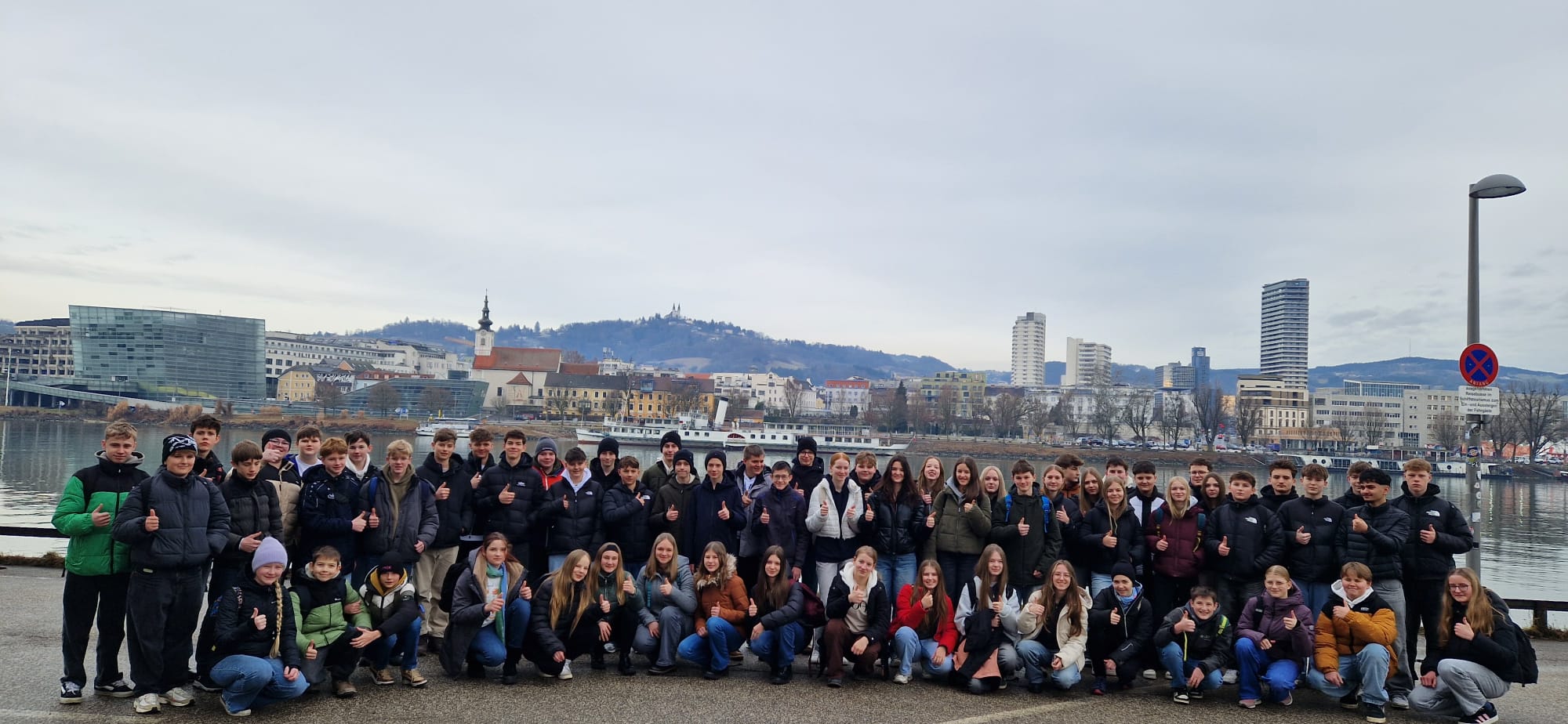 Vom 11. bis 12. Februar begaben sich die Klassen 4.a, 4.b und 4.m auf eine zweitägige Exkursion in die oberösterreichische Landeshauptstadt Linz. Es waren zwei Tage voller Kontraste – von beeindruckender Industriearchitektur über digitale Welten bis hin zur intensiven Auseinandersetzung mit der Geschichte.